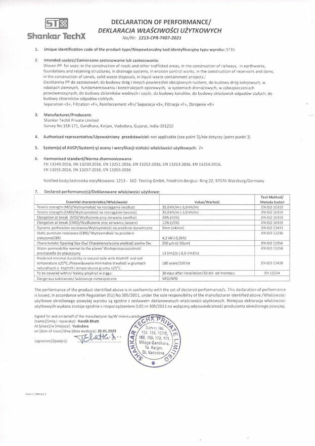 Geotkanina 35/35kN POLIPROPYLENOWA 525cm. 5,25m. Drogowa